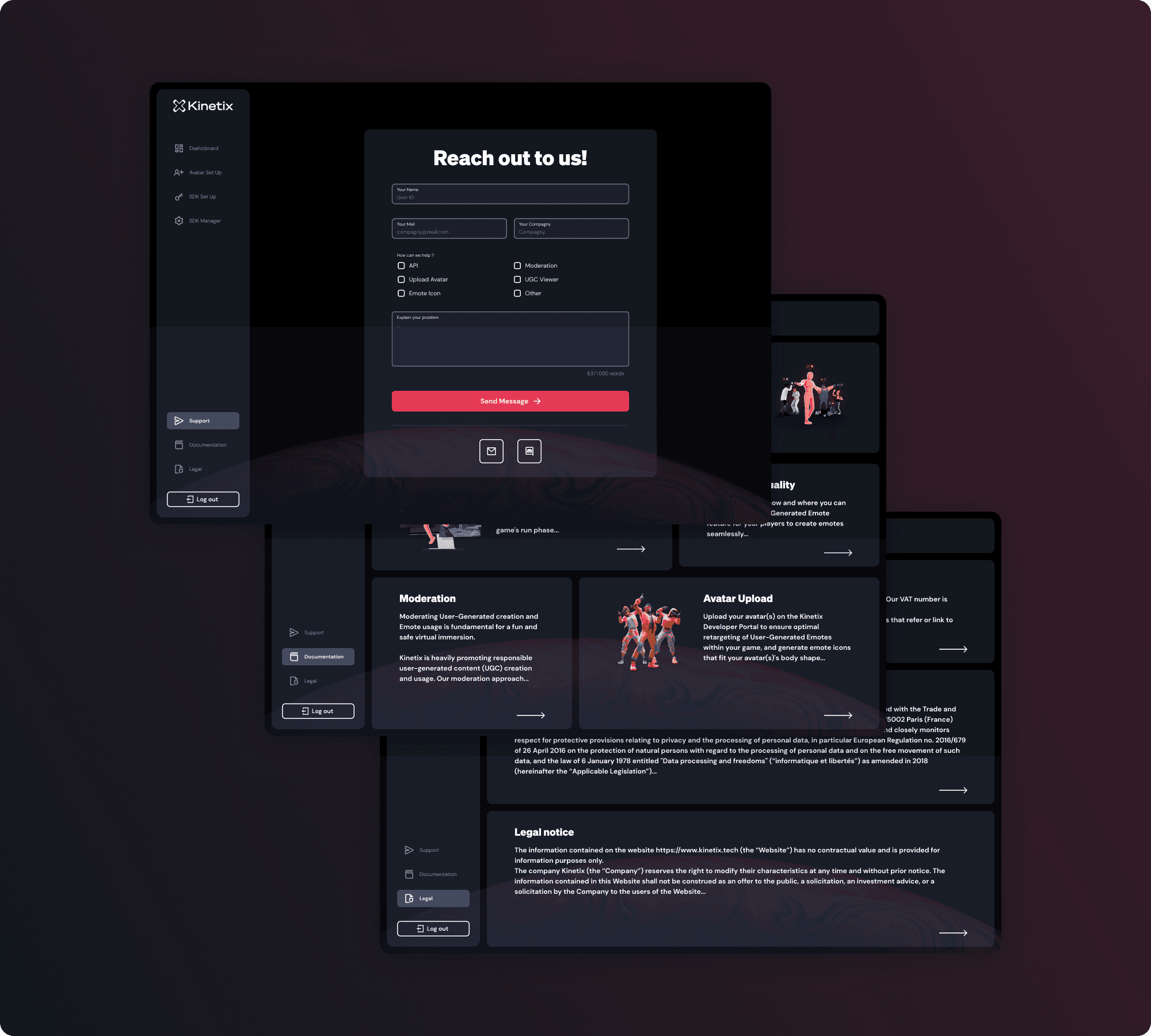 J'ai travaillé sur la refonte de l'application Web progressive (PWA) de Kinetix, une plateforme utilisée par les studios de jeux pour permettre aux joueurs de créer des animations d'avatars dans le jeu à partir de vidéos enregistrées ou téléchargées, ainsi que de liens YouTube/TikTok, en tirant parti de la technologie d'IA de Kinetix.