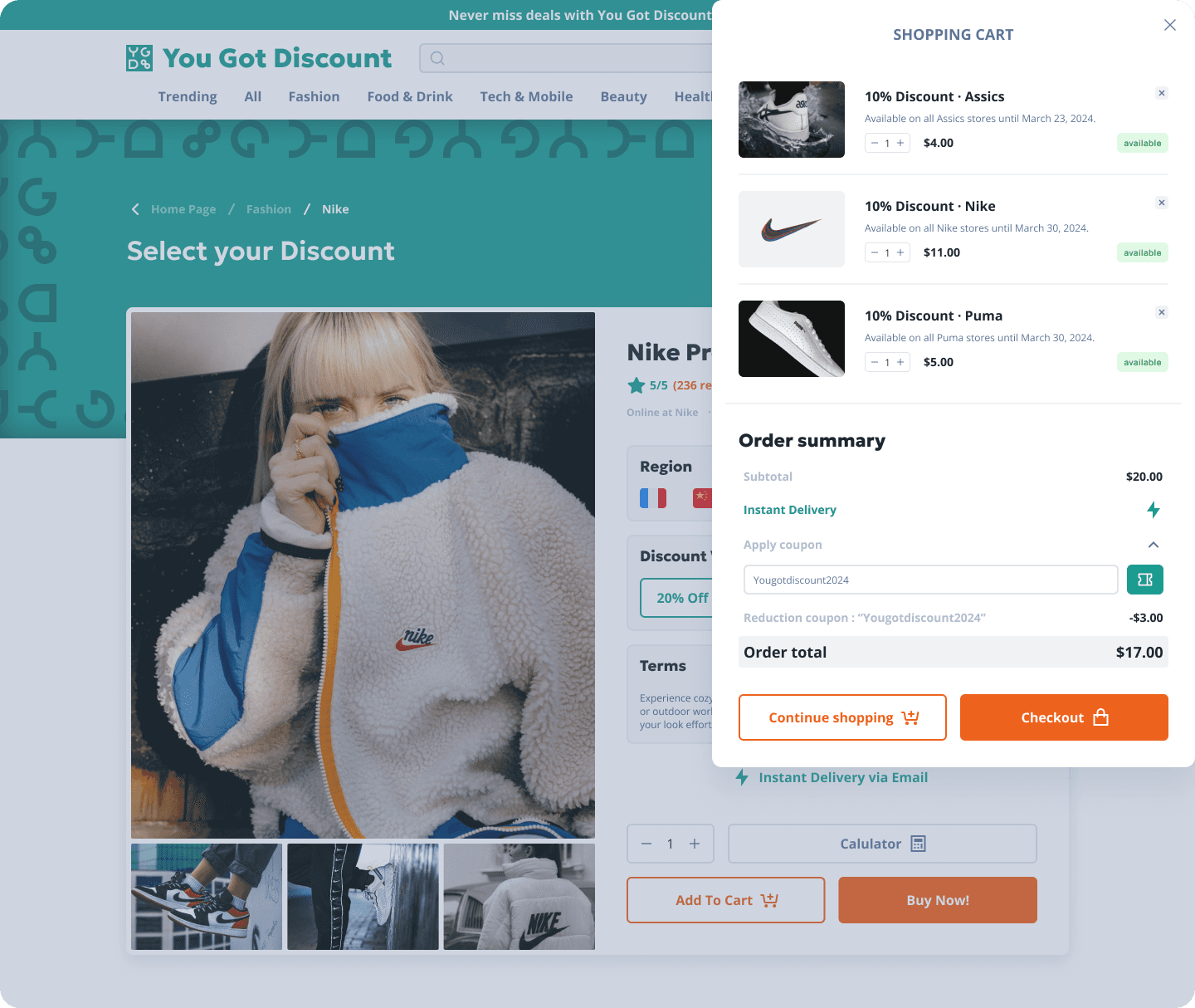 J'ai travaillé sur la conception UX/UI de la plateforme e-commerce You Got Discount, en optimisant l'expérience utilisateur pour améliorer la navigation et la conversion. J'ai contribué au développement du modèle initial de conception du site, en aidant à définir la direction visuelle et les standards graphiques du projet.